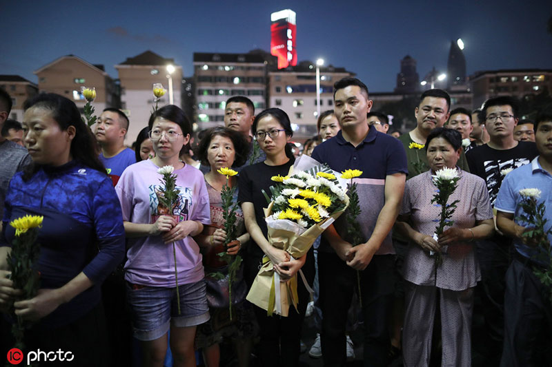 Los vecinos lloran la muerte de un ni?o de cinco a?os que fue golpeado por una ventana que se desprendió de un piso 20 en un bloque de edificios de Shenzhen, provincia de Guangdong, 16 de junio del 2019. [Foto: IC]