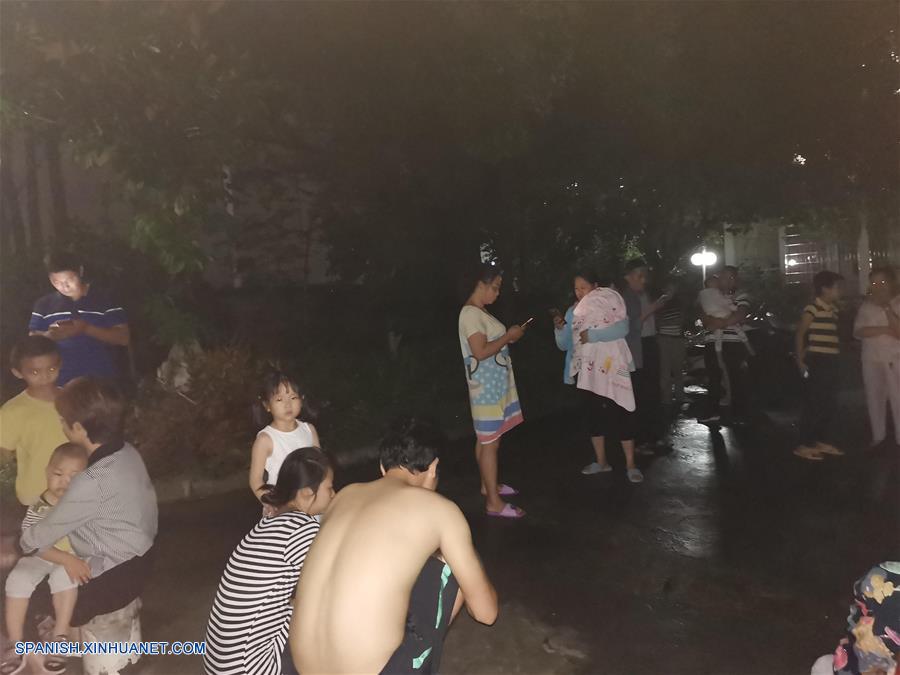 SICHUAN, 18 junio, 2019 (Xinhua) -- Personas se reúnen en una calle después de un sismo, en el distrito de Changning, en la ciudad de Yibin, en la provincia de Sichuan, en el suroeste de China, el 18 de junio de 2019. Un sismo de una magnitud 6,0 en la escala de Richter sacudió a las 22:55 del lunes, hora de Beijing, el distrito de Changning de la ciudad de Yibin en la provincia de Sichuan, suroeste de China, dijo el Centro de Redes Sismológicas de China (CENC, por sus siglas en inglés). (Xinhua/Chen Rui)