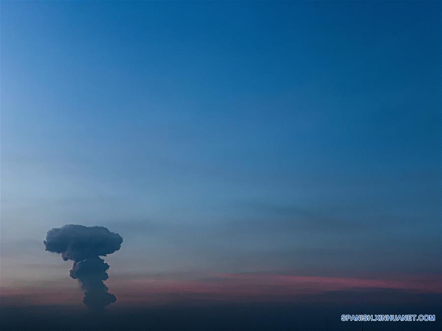 Una fumarola emana desde el volcán Popocatépetl, en el estado de Puebla, México, el 17 de junio de 2019. El volcán Popocatépetl registró el lunes dos explosiones en un lapso de seis horas que produjeron columnas de ceniza de hasta ocho kilómetros de altura, informó la Coordinación Nacional de Protección Civil (CNPC). (Xinhua/Str)