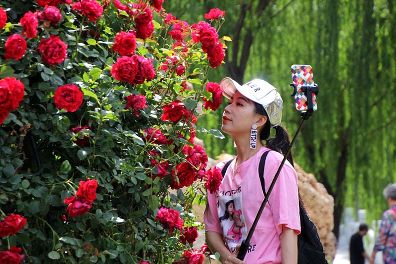 Las rosas chinas atraen a los visitantes en el Pabellón del Parque Taoran, ubicado en el segundo Anillo Sur de Beijing. [Foto: Han Jinhe/ China Daily]