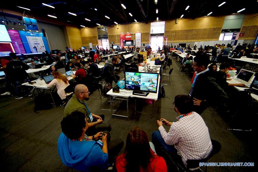 BOGOTA, 18 junio, 2019 (Xinhua) -- Personas juegan videojuegos durante la octava versión del festival tecnológico "Campus Party", en el Centro de Eventos Corferias, en la ciudad de Bogotá, capital de Colombia, el 18 de junio de 2019. El "Campus Party" es un festival tecnológico anual que reúne a hackers, desarrolladores, jugadores y geeks de la computadora. De acuerdo con los organizadores, se espera que el evento reciba del 18 al 22 de junio a aproximadamente 5.000 visitantes que participarán en actividades durante 240 horas de contenido distribuido en un los cuatro días. (Xinhua/Jhon Paz)