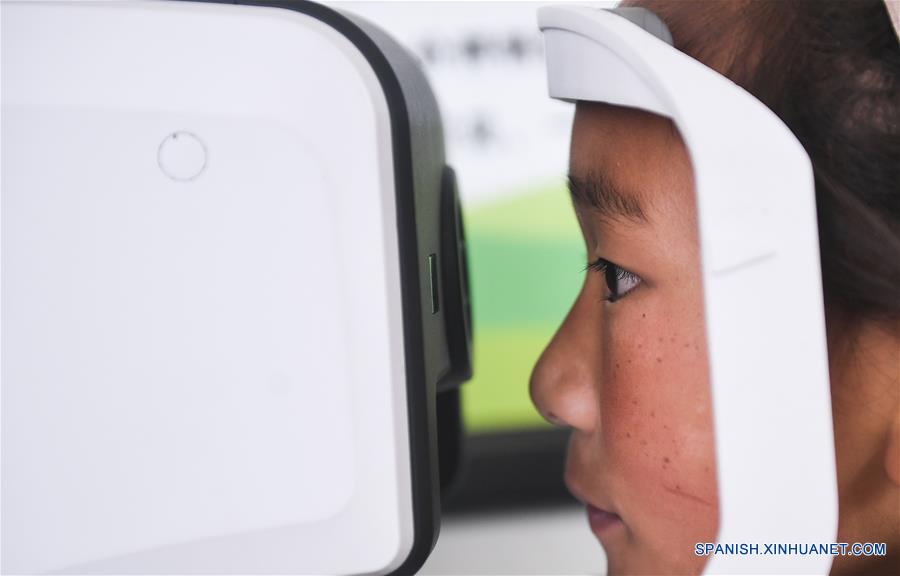 SICHUAN, 19 junio, 2019 (Xinhua) -- Imagen del 17 de junio de 2019, de Zhaxi Wangmo sometiéndose a una optometría en la Escuela Secundaria de Ruoergai, en el distrito de Ruoergai, en la provincia de Sichuan, en el suroeste de China. El distrito de Ruoergai organizó un examen de la vista para los estudiantes de escuelas primarias y secundarias en abril, y encontró que más de 1.800 estudiantes tenían problemas oculares. Zhaxi Wangmo, de 10 a?os, es una de esos estudiantes. El distrito de Nanhu de la ciudad de Jiaxing, en la provincia de Zhejiang, se ha unido con el condado de Ruoergai. Organizó a empresas locales para llevar a cabo la optometría y ofrecer lentes gratis a maestros y estudiantes en 15 aldeas en Ruoergai. El 17 de junio, Zhaxi Wangmo participó en la actividad de bienestar y obtuvo su primer par de lentes. (Xinhua/Xue Yubin)