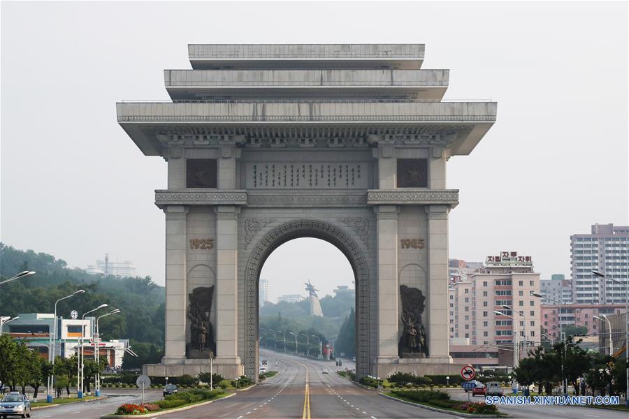 PYONGYANG, 19 junio, 2019 (Xinhua) -- Imagen del 18 de junio de 2019 de una vista del Arco del Triunfo, en Pyongyang, capital de la República Popular Democrática de Corea (RPDC). (Xinhua/Liu Yanxia)