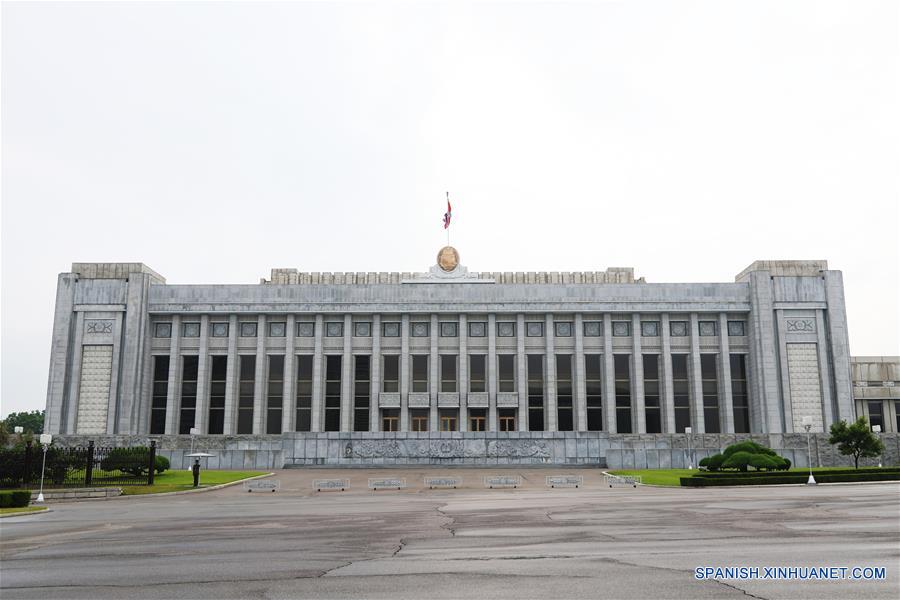 PYONGYANG, 19 junio, 2019 (Xinhua) -- Imagen del 18 de junio de 2019 de una vista del Salón de la Asamblea Mansudae, en Pyongyang, capital de la República Popular Democrática de Corea (RPDC). (Xinhua/Liu Yanxia)