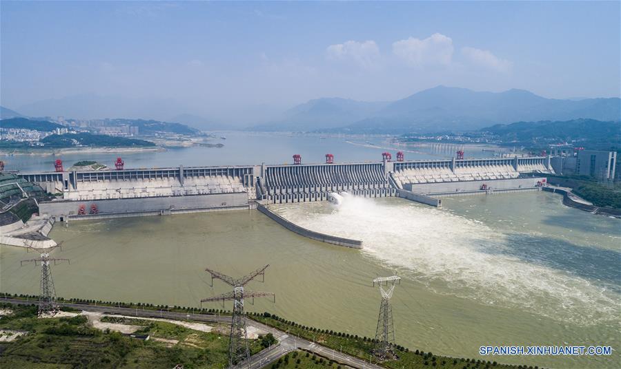 Hubei, 24/06/2019 (El Pueblo en Línea) - Vista de agua siendo descargada de la Presa Tres Gargantas, un gigantesco proyecto hidroeléctrico en el Río Yangtze, en la ciudad de Yichang, en la provincia central de Hubei, China, el 23 de junio de 2019. (Xinhua/Zheng Jiayu)