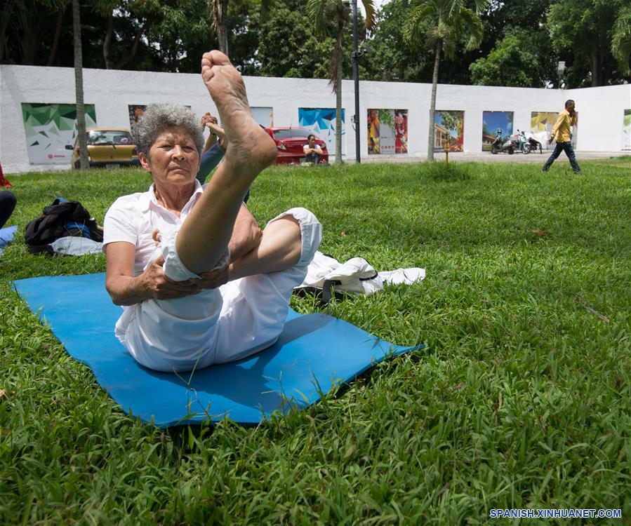 Una persona practica yoga durante una clase abierta en el marco del Día Internacional del Yoga, en Caracas, Venezuela, el 22 de junio de 2019. La Asamblea General de la Organización de las Naciones Unidas (ONU) declaró el 21 de junio como Día Internacional del Yoga en 2014. (Xinhua/Marcos Salgado)