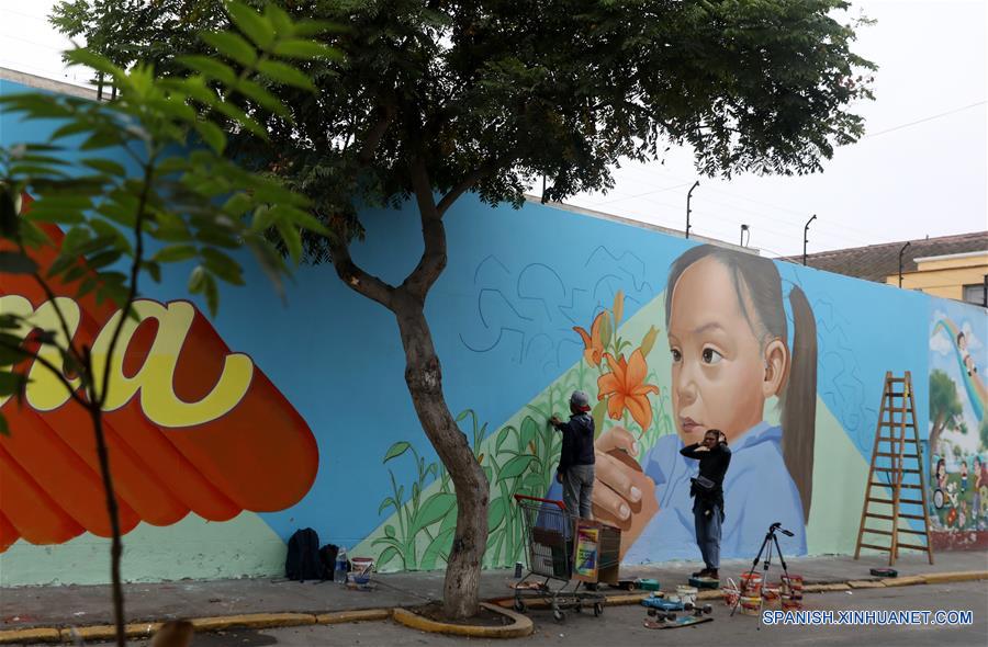 LIMA, 24 junio, 2019 (Xinhua) -- Artistas callejeros pintan un mural en la pared de una calle, en el marco de la Semana de Arte Urbano, en el distrito de Barranco, en Lima, Perú, el 24 de junio de 2019. De acuerdo con información de la prensa local, la Semana de Arte Urbano, que se lleva a cabo del 24 al 30 de junio, busca intervenir y rehabilitar diferentes espacios de la ciudad por medio de la expresión artística y muralización. (Xinhua/Mariana Bazo)