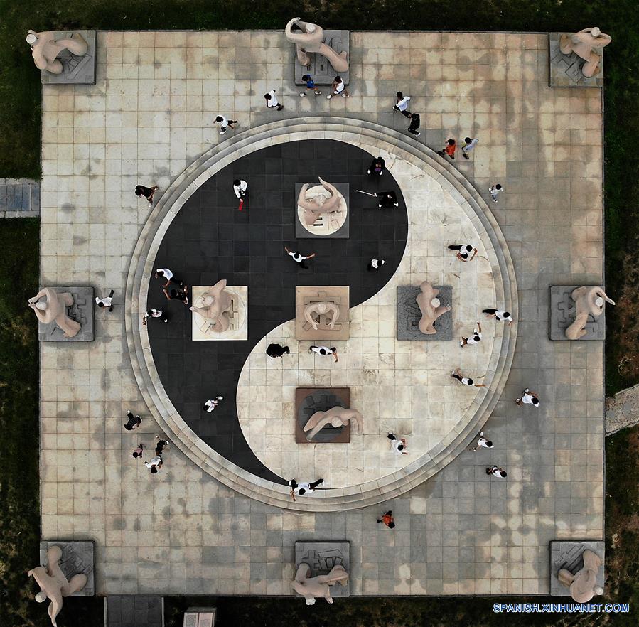 Henan, 26/06/2019 (El Pueblo en Línea) - Imagen del 19 de junio de 2019 de alumnos de la Escuela de Taiji de Chenjiagou practicando Taiji, en la villa de Chenjiagou del distrito de Wenxian, provincia de Henan, en el centro de China. A menudo abreviado a taiji, t'ai chi o tai chi en uso inglés, T'ai chi ch'uan o taijíquán es un arte marcial chino practicado tanto para adiestramiento de defensa como por sus beneficios para la salud. Chenjiagou fue marcado como el "Lugar de nacimiento del Taiji" por la Asociación China de Wushu. Un peque?o pueblo como es, alberga muchas escuelas y centros de formación de Kung Fu, que atraen a los amantes del Taiji de diferentes países y regiones. Cada vez más jóvenes practican el arte marcial en Chenjiagou para hacer realidad su sue?o del Taiji. (Xinhua/Li An)