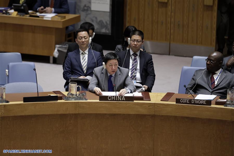 NUEVA YORK, 26 junio, 2019 (Xinhua) -- Wu Haitao (i-frente), representante permanente asistente de China ante la Organización de las Naciones Unidas (ONU), participa durante la sesión informativa semestral del Consejo de Seguridad sobre el cumplimiento de la resolución 2231, que respaldó el Plan de Acción Integral Conjunto (PAIC) sobre el programa nuclear de Irán, en la sede de la ONU, en Nueva York, Estados Unidos, el 26 de junio de 2019. Joao Vale de Almeida, jefe de la delegación de la Unión Europea (UE) ante la ONU, reiteró el miércoles el apoyo al PAIC, conocido comúnmente como acuerdo nuclear de Irán, a pesar de las crecientes tensiones entre Estados Unidos y la república islámica. (Xinhua/Li Muzi)