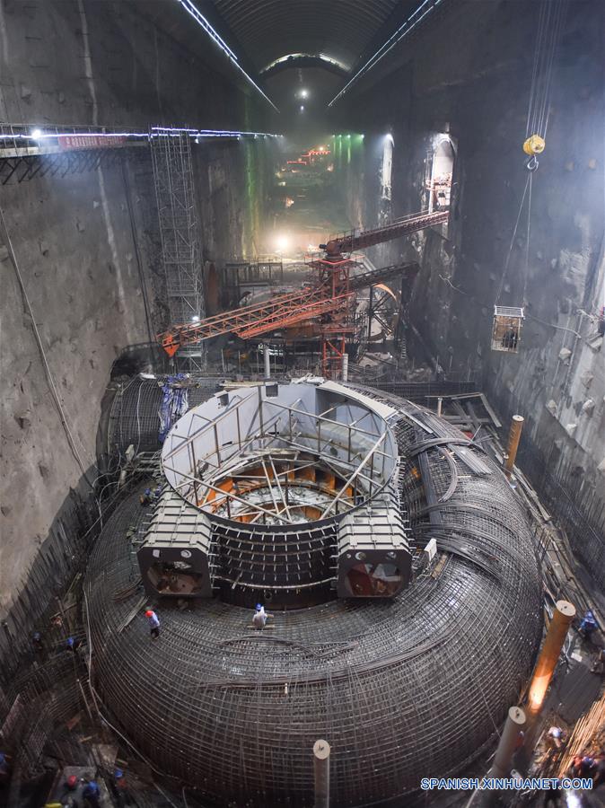 Sichuan, 28/06/2019 (El Pueblo en Línea) - Vista de la unidad generadora de millones de kilovatios del proyecto hidroeléctrico de Baihetan bajo construcción, en el distrito de Ningnan de la prefectura autónoma de la etnia yi de Liangshan, provincia de Sichuan, en el suroeste de China, el 26 de junio de 2019. En el río Jinsha, una sección superior del Yangtze, la presa de Baihetan es el segundo proyecto más grande después del proyecto de las Tres Gargantas en la provincia central de Hubei, en términos de capacidad instalada. (Xinhua/Xue Yubin)