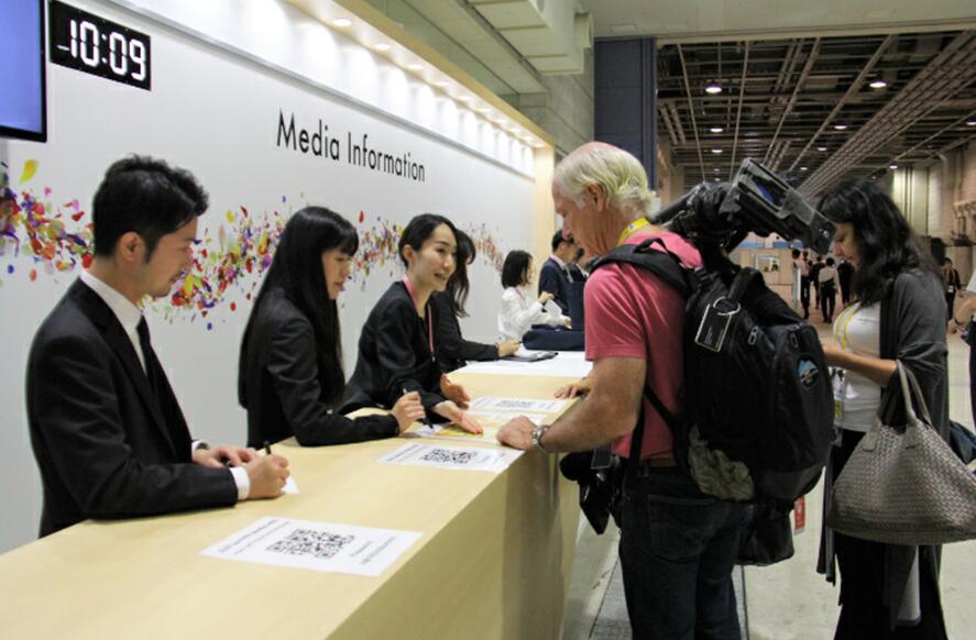 El 27 de junio, se inauguró oficialmente el Centro de Prensa de la Cumbre G20 en Osaka. La imagen muestra a periodistas extranjeros consultando en el Centro de Prensa. Foto de Ma Fei, Diario del Pueblo