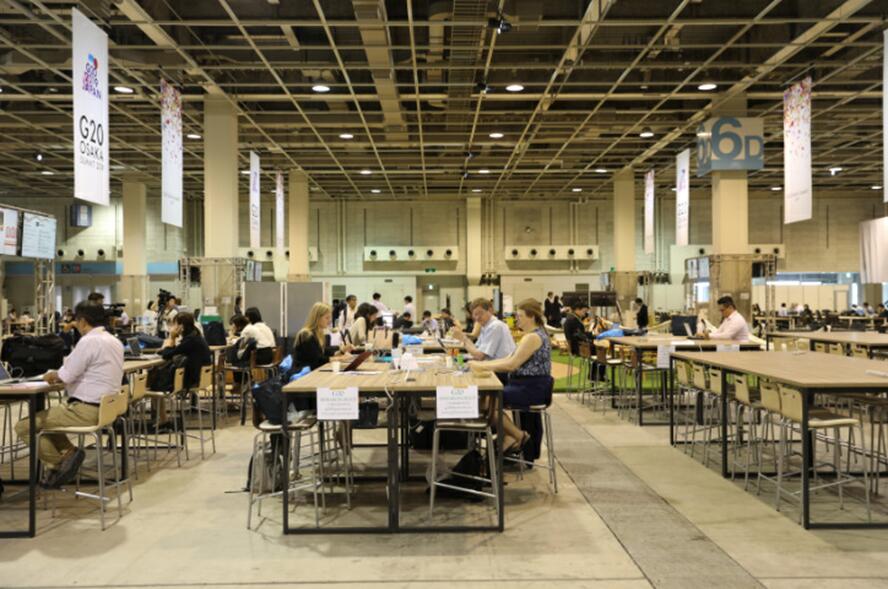 El 27 de junio, los delegados trabajaban en el Centro de Prensa de la Cumbre de Osaka. Foto de Xu Wei, Diario del Pueblo