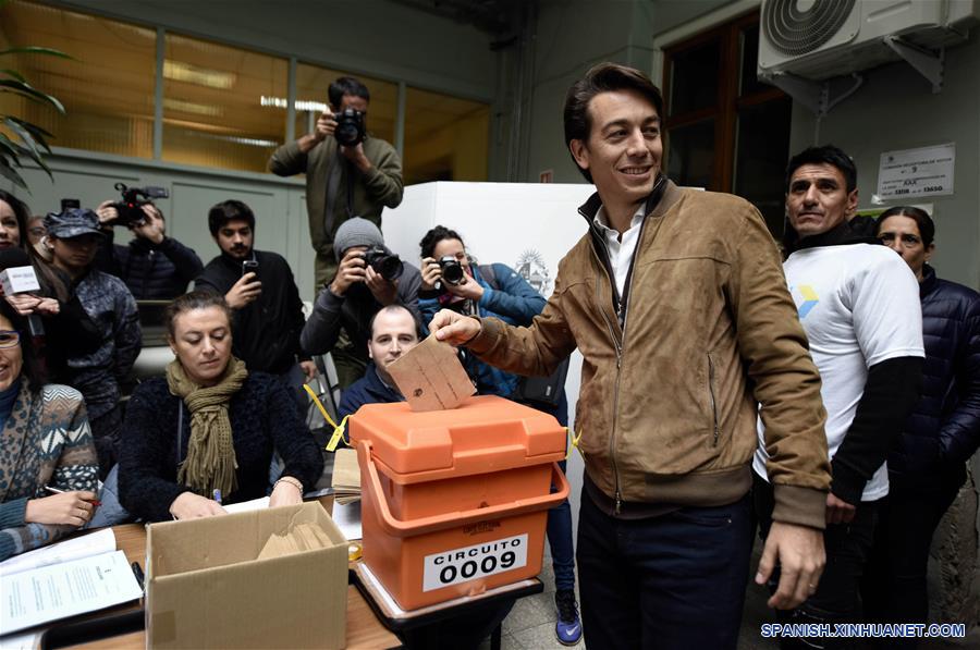 El precandidato por el opositor Partido Nacional, Juan Sartori (d-frente), emite su voto durante las elecciones primarias en Montevideo, capital de Uruguay, el 30 de junio de 2019. Las elecciones primarias en Uruguay, en las que los partidos políticos eligen a sus candidatos a la presidencia para los comicios generales del 27 de octubre, transcurren el domingo con normalidad y con llamados a la población a que asista a las urnas. (Xinhua/Nicolás Celaya)