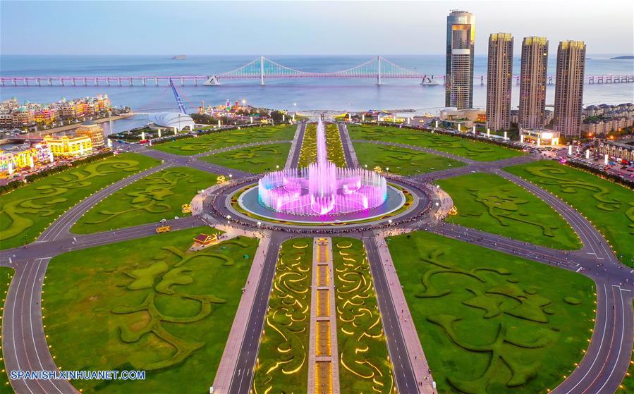 DALIAN, 1 julio, 2019 (Xinhua) -- Imagen aérea del 15 de junio de 2019 de la Plaza Xinghaiwan en Dalian, provincia de Liaoning, en el noreste de China. El Foro Davos de Verano 2019 se llevará a cabo del 1 al 3 de julio en la ciudad costera de Dalian, en el noreste de China, con enfoque en la globalización. También conocido como la XIII Conferencia Anual de Nuevos Campeones 2019, el foro de este a?o tendrá el tema de "Liderazgo 4.0: Triunfando en una nueva era de globalización". (Xinhua/Piao Feng)