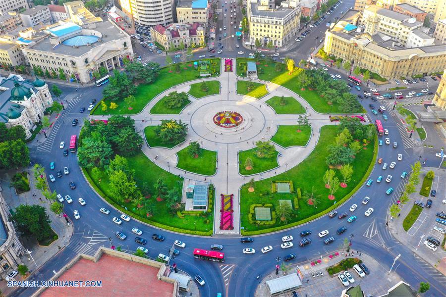 DALIAN, 1 julio, 2019 (Xinhua) -- Imagen aérea del 19 de junio de 2019 de la Plaza Zhongshan, en Dalian, provincia de Liaoning, en el noreste de China. El Foro Davos de Verano 2019 se llevará a cabo del 1 al 3 de julio en la ciudad costera de Dalian, en el noreste de China, con enfoque en la globalización. También conocido como la XIII Conferencia Anual de Nuevos Campeones 2019, el foro de este a?o tendrá el tema de "Liderazgo 4.0: Triunfando en una nueva era de globalización". (Xinhua/Piao Feng)