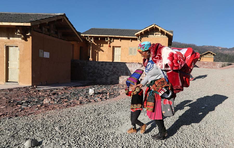 La gente de la etnia Yi se muda a sus nuevas casas en el pueblo de Sanhe, provincia de Sichuan, el 24 de febrero de 2019. [Foto / Xinhua]