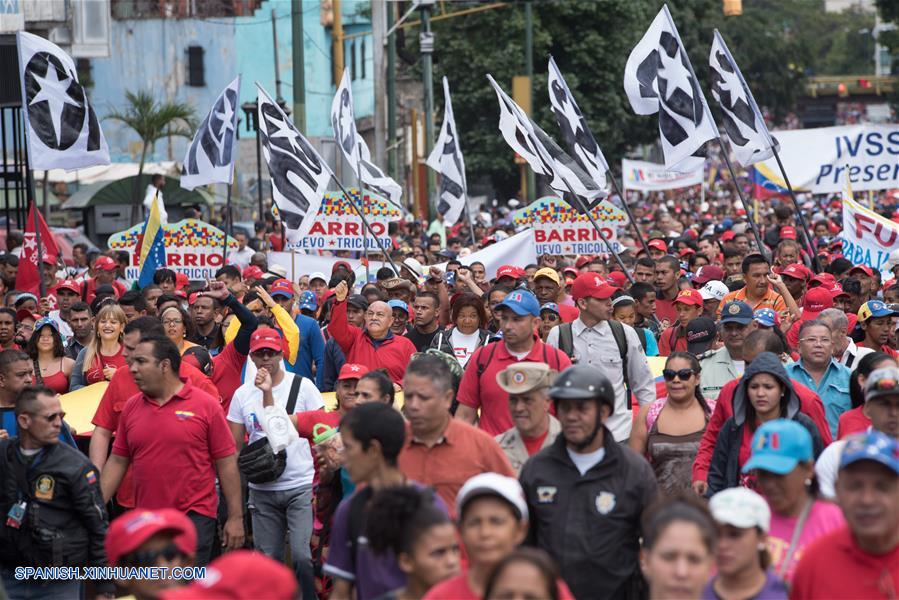 Personas asisten a una marcha para conmemorar el 208 aniversario de la Independencia de Venezuela, en Caracas, Venezuela, el 5 de julio de 2019. El presidente venezolano, Nicolás Maduro, anunció el viernes en un discurso con motivo del desfile cívico-militar de celebración de los 208 a?os de la independencia venezolana, que la Fuerza Armada Nacional Bolivariana (FANB) realizará ejercicios militares el 24 de julio en homenaje al Libertador Simón Bolívar, nacido el 24 de julio de 1783, y a la Armada, creada en 1811. (Xinhua/Marcos Salgado)