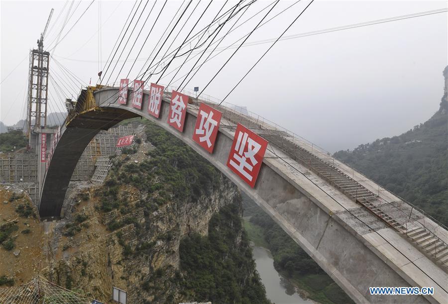 Trabajadores en la obra del arco principal de un puente estratégico para China, 7 de julio del 2019. Situado en la zona fronteriza de las provincias de Sichuan, Guizhou y Yunnan, este domingo se terminó de montar su arco principal que sienta las bases para su terminación, prevista para finales del 2019. Una vez construido, el puente resolverá dificultades de tráfico para cientos de miles de personas que viven en la zona fronteriza de las tres provincias y hará su contribución a la mitigación de la pobreza en la zona de la monta?a Wumeng. (Foto: Xinhua/Liu Kun)