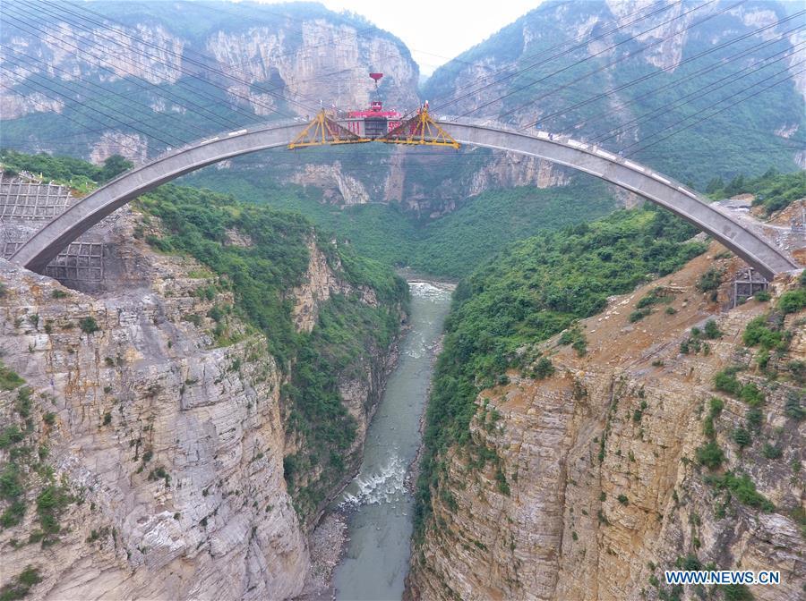 El arco principal de un puente estratégico para China fue montado con éxito el 7 de julio del 2019. Situado en la zona fronteriza de las provincias de Sichuan, Guizhou y Yunnan, este domingo se terminó de montar su arco principal que sienta las bases para su terminación, prevista para finales del 2019. Una vez construido, el puente resolverá dificultades de tráfico para cientos de miles de personas que viven en la zona fronteriza de las tres provincias y hará su contribución a la mitigación de la pobreza en la zona de la monta?a Wumeng. (Foto: Xinhua/Liu Kun)