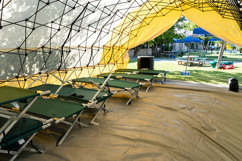 Después del terremoto de magnitud 7,1, las tiendas de campa?a se instalan en Ridgecrest, California, 4 de julio del 2019. [Foto: Xinhua]