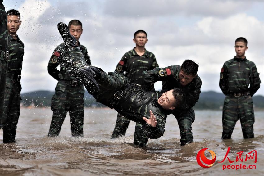 Qinzhou, 10/07/2019 (El Pueblo en Línea) - Recientemente, el destacamento de Qinzhou del Equipo de Guangxi de la Policía Armada llevaron a cabo una misión muy cercana a la realidad, y bajo requisitos estrictos y difíciles, los miembros del equipo entrenaron en los campos de batalla y en aguas cercanas a la base. Con este entrenamiento se aumentó el nivel técnico y táctico de los miembros del equipo de combate especial en entornos difíciles y condiciones complejas.
