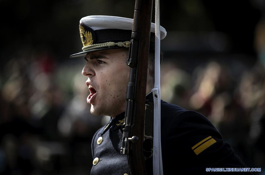 Un elemento de las Fuerzas Armadas de Argentina participa en el desfile militar en el marco de la conmemoración del Día de la Independencia, en la ciudad de Buenos Aires, capital de Argentina, el 9 de julio de 2019. El presidente de Argentina, Mauricio Macri, encabezó el martes en la ciudad norte?a de Tucumán el acto central por el Día de la Independencia, y luego asistió en Buenos Aires a un desfile militar con la presencia de cerca de 4.000 efectivos. (Xinhua/Martín Zabala)
