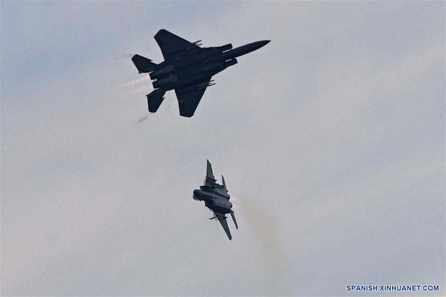 SINGAPUR, 13 julio, 2019 (Xinhua) -- Aviones de combate vuelan durante el ensayo del Desfile del Día Nacional llevado a cabo en la ciudad de Singapur, capital de Singapur, el 13 de julio de 2019. Singapur celebra su independencia el 9 de agosto. (Xinhua/Then Chih Wey)