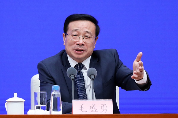Mao Shengyong, portavoz de la Oficina Nacional de Estadísticas de China, durante una sesión informativa celebrada en Beijing, 15 de julio del 2019. [Foto: China Daily por Zhu Xingxin]