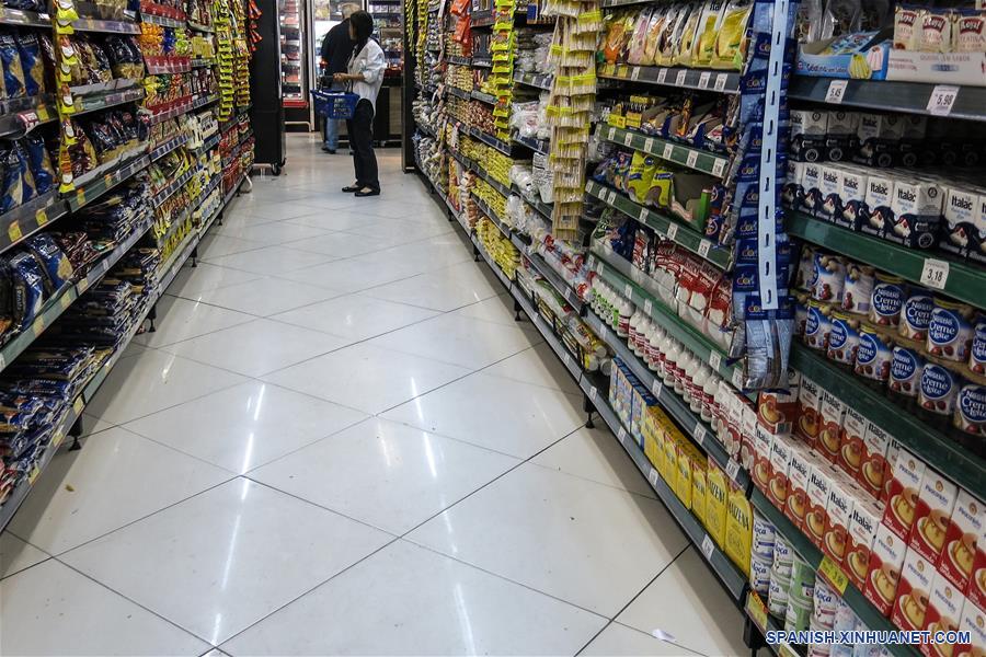 Una mujer observa productos en un supermercado, en Sao Paulo, Brasil, el 15 de julio de 2019. Los analistas del mercado financiero de Brasil redujeron de 0,82 a 0,81 por ciento la previsión de crecimiento del producto interno bruto (PIB) para 2019, una nueva baja consecutiva, informó el lunes el Banco Central (BC). (Xinhua/Rahel Patrasso)