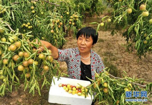 El 14 de julio, los agricultores de azufaifas de la Cooperativa Agrícola Luran en el condado Cangxian de Hebei, recogían las azufaifas de invierno en un invernadero.[Foto: Xinhua/Mouyu]