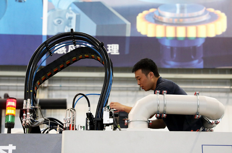 Un técnico opera una máquina de control numérico en una empresa de maquinaria en Chongqing. [Foto / Xinhua]