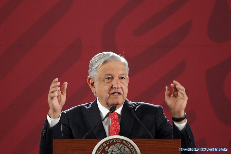 CIUDAD DE MEXICO, 17 julio, 2019 (Xinhua) -- El presidente de México, Andrés Manuel López Obrador, habla en una rueda de prensa, en Palacio Nacional, en la Ciudad de México, capital de México, el 17 de julio de 2019. López Obrador, anunció el miércoles que en los próximos días se reunirá en el país con legisladores estadounidenses para acelerar la aprobación del Tratado entre México, Estados Unidos y Canadá (T-MEC) de libre comercio. (Xinhua/Str)