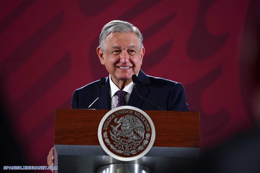 El presidente mexicano, Andrés Manuel López Obrador, habla en una rueda de prensa en Palacio Nacional, en la Ciudad de México, capital de México, el 19 de julio de 2019. El gobierno mexicano seguirá pugnando por que los bancos privados reduzcan las comisiones a las remesas que los mexicanos envían desde el exterior, una de las principales fuentes de divisas del país, afirmó el viernes el presidente de México, Andrés Manuel López Obrador. (Xinhua/Str)