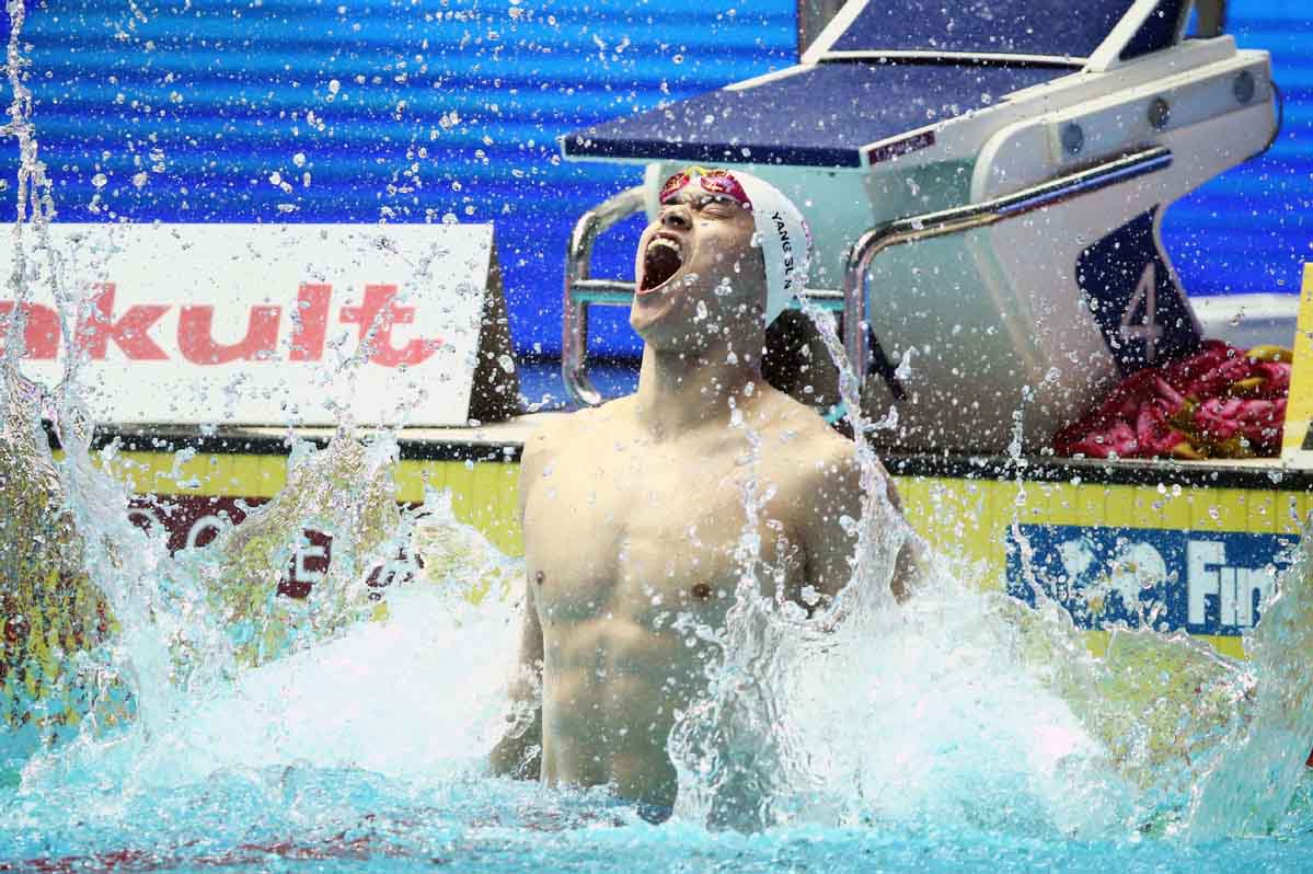Sun Yang celebra la victoria en Gwangju, Corea del Sur, 21 de julio del 2019. [Foto: Agencias]