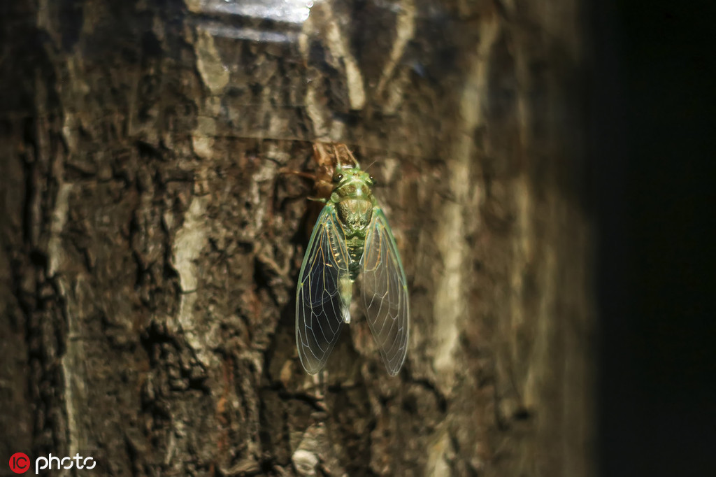 Imagen de una cigarra en la base de reproducción de Zhang en el condado Yangxin, provincia de Shandong. [Foto / IC]