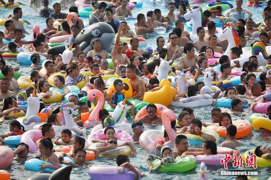 Ciudadanos de Nanjing se agrupan en el parque acuático para tomar el fresco (4)