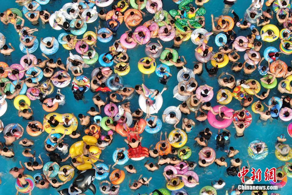 Ciudadanos de Nanjing se agrupan en el parque acuático para tomar el fresco (5)