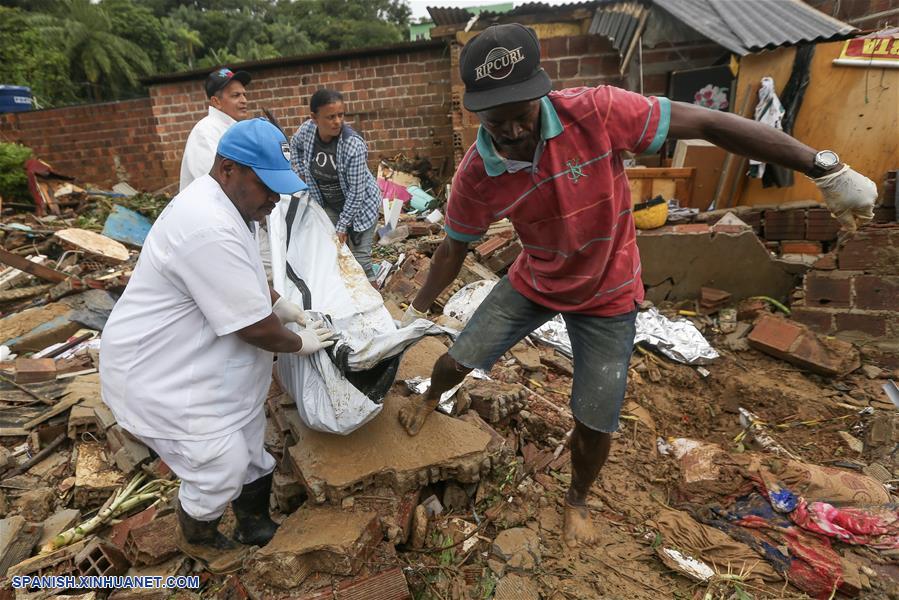 Imagen proveída por Agencia Estado de rescatistas trasladando un cuerpo en la zona donde se registró un deslizamiento de tierras a causa de las lluvias, en Olinda, estado de Pernambuco, Brasil, el 24 de julio de 2019. Al menos 13 personas fallecieron en las últimas horas a consecuencia de las intensas lluvias en la zona de Recife, capital del estado brasile?o de Pernambuco, informó el miércoles el Cuerpo de Bomberos local. (Xinhua/Carlos Ezequiel Vannoni/Agencia Pixel Press/AGENCIA ESTADO)