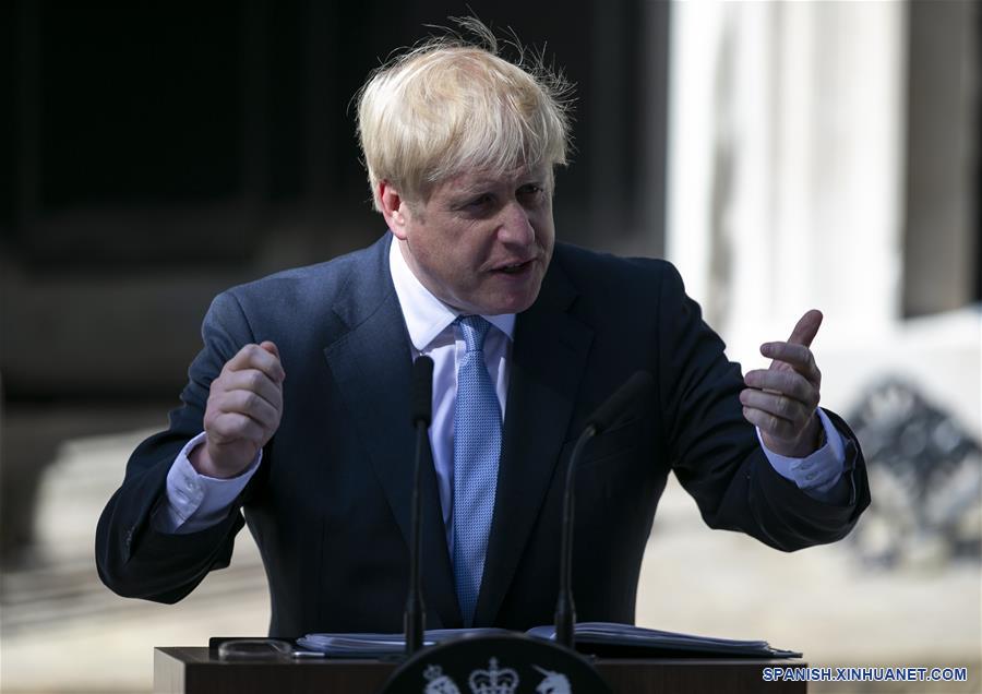 El recién elegido líder del Partido Conservador y primer ministro de Reino Unido, Boris Johnson, habla en el número 10 de la calle Downing, en Londres, Reino Unido. El recién elegido líder del Partido Conservador británico, Boris Johnson, asumió el miércoles el cargo de primer ministro de Reino Unido en medio de las crecientes incertidumbres sobre el "brexit". El relevo ocurre luego de que Theresa May renunció formalmente como primera ministra del país y Johnson fue invitado por la reina británica Isabel para formar el gobierno. (Xinhua/Han Yan)