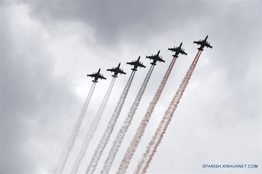 SAN PETERSBURGO, 28 julio, 2019 (Xinhua) -- Aeronaves de combate rusas realizan una presentación durante el desfile anual del Día de la Armada, en San Petersburgo, Rusia, el 28 de julio de 2019. (Xinhua/Lu Jinbo)