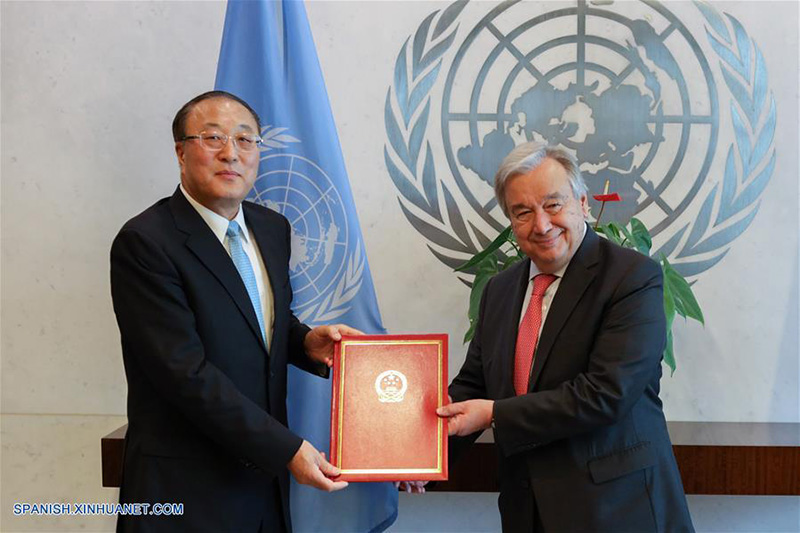 Antes de su primera rueda de prensa con medios chinos, Zhang presentó sus cartas credenciales al secretario general de la ONU, António Guterres.