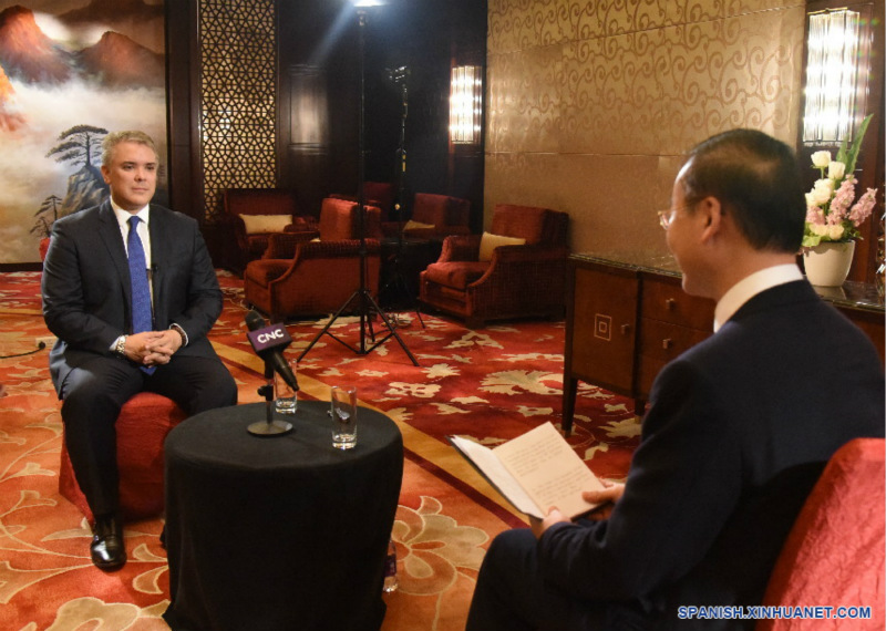 El presidente de Colombia, Iván Duque Márquez, ofreció una entrevista exclusiva a Xinhua el 30 de julio en Beijing. (Xinhua/Fan Haoyu)