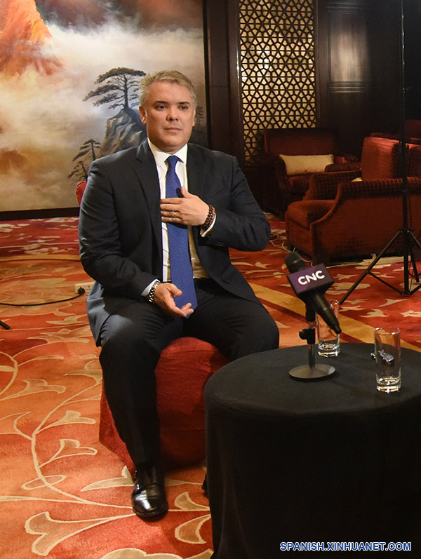 El presidente de Colombia, Iván Duque Márquez, ofreció una entrevista exclusiva a Xinhua el 30 de julio en Beijing. (Xinhua/Fan Haoyu)