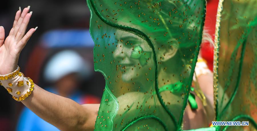 Lazara María González Gil actúa en el parque de atracciones temático de la película para el que trabaja en Changchun, provincia de Jilin, noreste de China, el 1 de agosto de 2019.