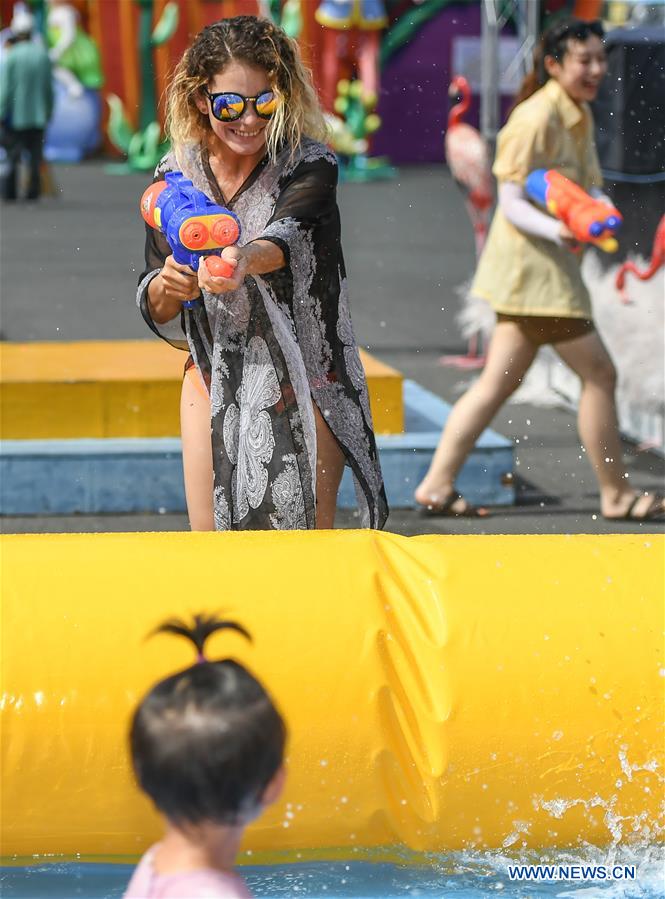 Changchun, 02/08/2019 (El Pueblo en Línea) -Lazara María González Gil juega con un ni?o en el parque de atracciones temático de cine para el que trabaja en Changchun, provincia de Jilin, noreste de China, el 1 de agosto de 2019. Lazara María González Gil es una bailarina cubana de 25 a?os nacida en Villa Clara. Buscando ir más allá en su carrera y un futuro mejor, Lazara llegó a China en 2017 y pronto fue contratada por una compa?ía de cultura y educación china. En los últimos dos a?os, ha viajado como bailarina a muchas ciudades de China, incluidas Harbin, Beijing, Jinan, Shanghai, Guangzhou y Haikou. Hoy en día, Lazara trabaja para un parque temático en Changchun y se ha adaptado bien a la población local. "China es súper grande con paisajes maravillosos. ?Quiero hacer el mejor baile de mi carrera aquí en China!", dijo Lazara. (Xinhua / Wang Haofei)