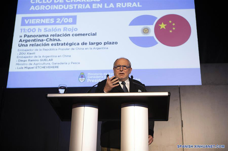 En el contexto de la Exposición Rural 2019 que se desarrolla en la ciudad de Buenos Aires (capital), el ministro argentino de Agricultura, Ganadería y Pesca, Luis Miguel Etchevehere, expusieron en un panel sobre el alcance de la relación entre Argentina y China y los desafíos que enfrentan los productores locales para lograr satisfacer la demanda del mercado chino.