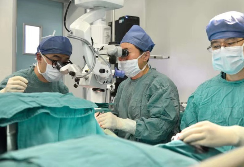 Zhang Mingchang, doctor del Hospital Wuhan Union, realiza la cirugía de trasplante para ayudar a que los ojos del paciente se recuperen. [Foto: chinadaily.com.cn/ Liu Kunwei]