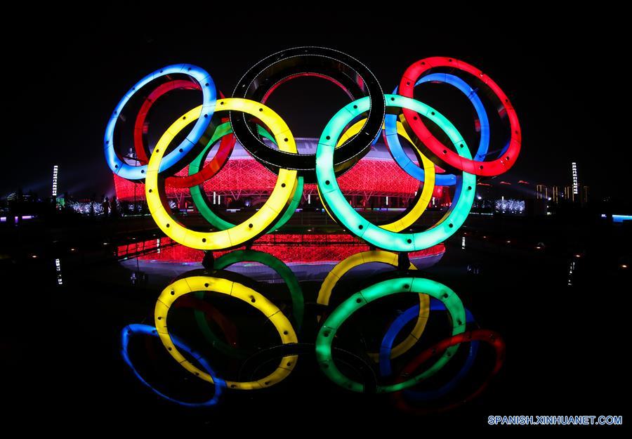 SHANXI, 8 agosto, 2019 (Xinhua) -- Vista de los anillos olímpicos frente a la sede de la ceremonia de inauguración de los II Juegos de la Juventud de China, en Taiyuan, provincia de Shanxi, en el norte de China, el 8 de agosto de 2019. (Xinhua/Ding Ting)