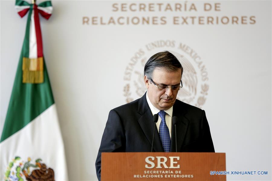 El secretario de Relaciones Exteriores de México, Marcelo Ebrard, asiste a una conferencia de prensa, en la sede de la cancillería, en la Ciudad de México, capital de México, el 8 de agosto de 2019. Autoridades migratorias de Estados Unidos detuvieron a 107 mexicanos durante los operativos del miércoles en plantas procesadoras de alimentos del estado de Misisipi, informó el jueves Ebrard. (Xinhua/Francisco Ca?edo)