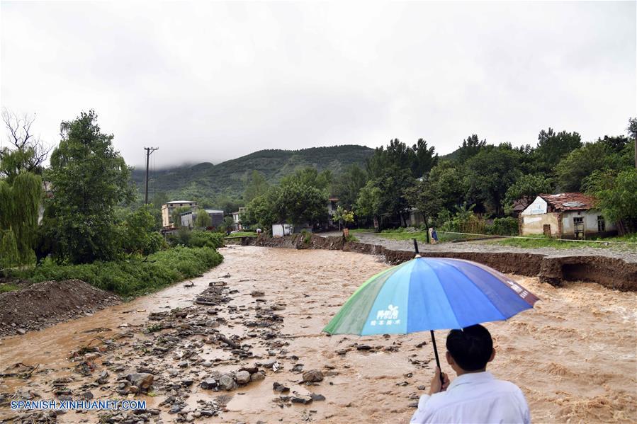 Una persona observa la orilla de un río da?ada debido a una inundación, en la aldea de Atuo de la municipalidad de Wangfen en Qingzhou, en la provincia de Shandong, en el este de China. El tifón Lekima tocó tierra por segunda ocasión el domingo a las 20:50 horas en la costa del distrito de Huangdao, en la ciudad de Qingdao, en la provincia de Shandong, este de China, con vientos de hasta 82,8 kilómetros por hora, dijo la Administración Meteorológica de China. (Xinhua/Guo Xulei)